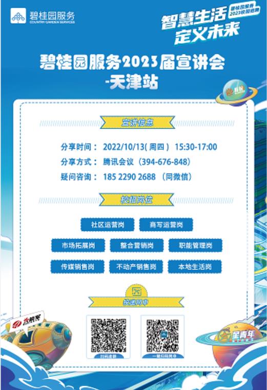 点击进入“智慧生活 定义未来”碧桂园服务2023届校园招聘(天津站)
