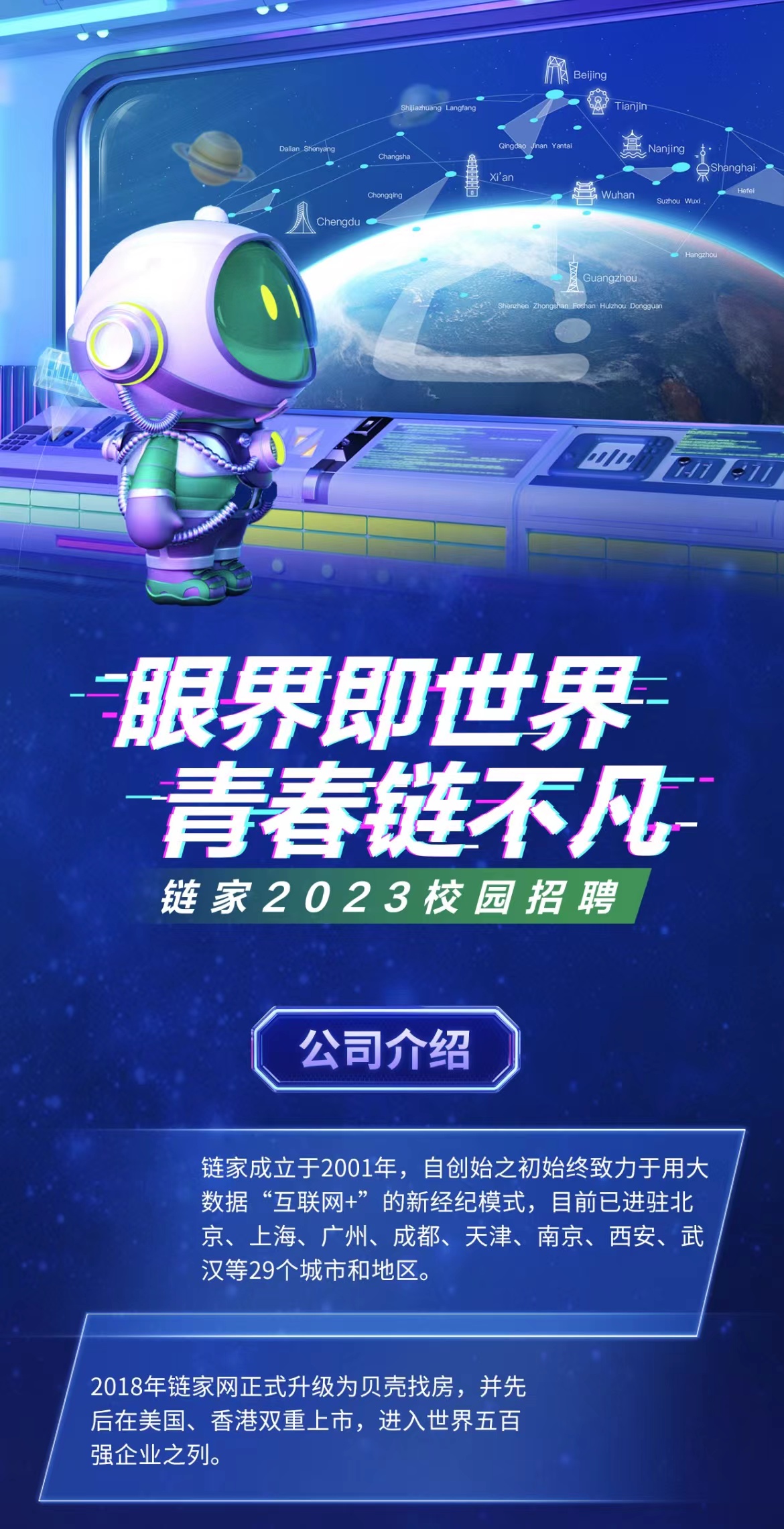 链+新生代 校园招聘简章 一、公司介绍链家成立于2001年,致力于用大数据引领互联网+的新经纪模式,为消费者提供全流程品质服务体验,打造房地产服务行业的国民品牌...
