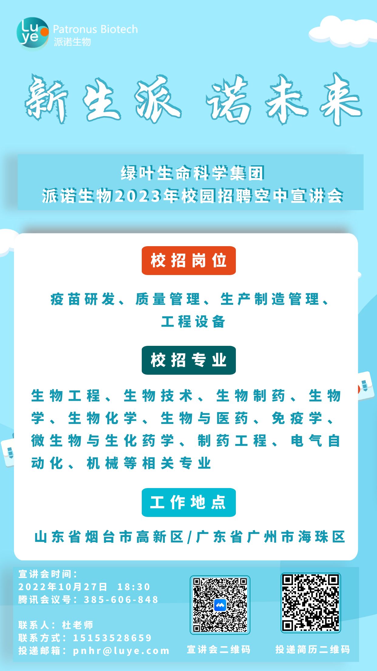 点击进入“新生派 诺未来”绿叶生命科学集团派诺生物2023年校园招聘
